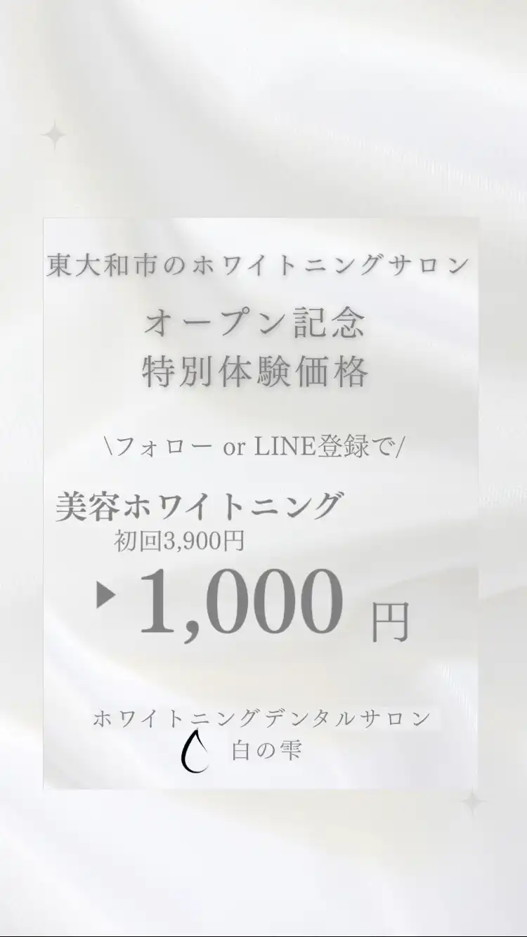 東大和市の【白の雫】は、歯科衛生士歴10年以上のオーナーが運営するプライベートサロンです。